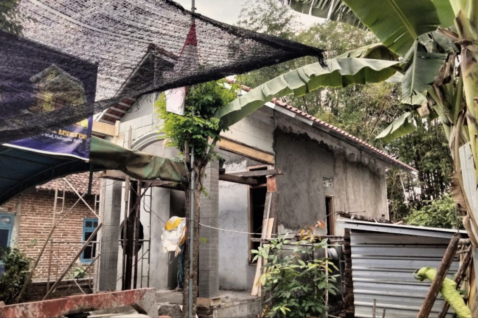 Pembangunan dimulai dengan pembongkaran rumah lama pada 16 September 2025, lalu peletakan Batu Syukur empat hari kemudian. Karena daerah itu rawan banjir, pondasi rumah baru ditinggikan hingga satu meter.